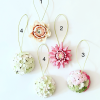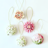 | Flower Tree Ornaments | 1 Cafe Au Lait Dahlia, 2 Pink Dahlia, 3 Multi Coloured Hydrangea, 4 White & Gree Hydrangea, Set of 4 |