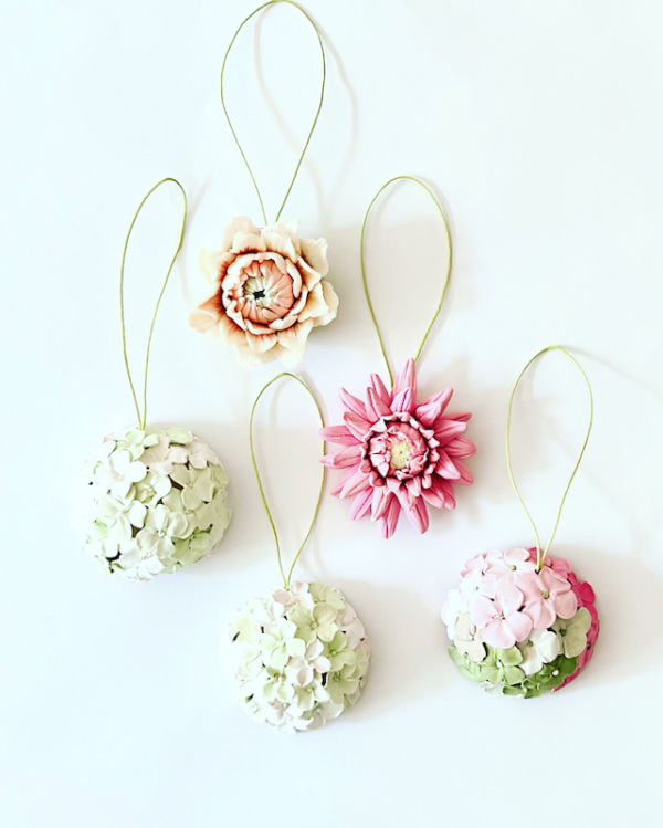 Hand crafted Christmas Tree Decorations. Hydrangea & Dahlias