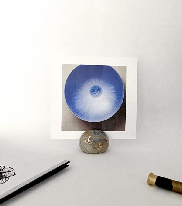 Marbled Picture Holder: Blue Agate polymer clay with a touch of gold leaf and resin coated. This is a modern, graceful way to display a picture.
